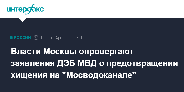 Власти Москвы опровергают заявления ДЭБ МВД о предотвращении хищения на "Мосводоканале"