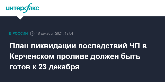 План ликвидации последствий ЧП в Керченском проливе должен быть готов к 23 декабря