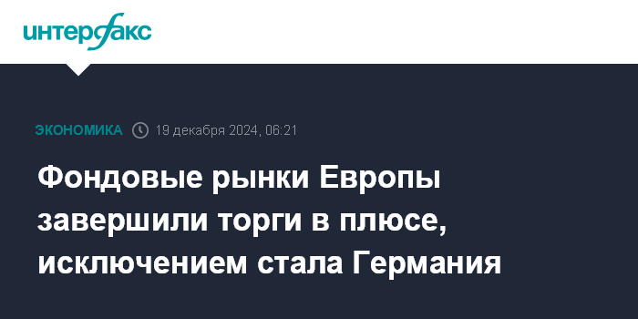 Москва. 19 декабря. INTERFAX.RU - Фондовые индексы крупнейших стран Западной Европы в основном завершили торги в среду в плюсе, небольшое снижение показал лишь германский индикатор.