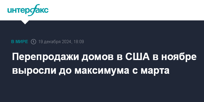 Перепродажи домов в США в ноябре выросли до максимума с марта