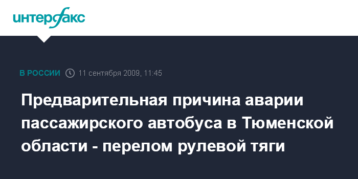 Предварительная причина аварии пассажирского автобуса в Тюменской области - перелом рулевой тяги