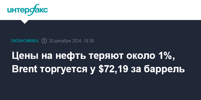 Москва. 20 декабря. INTERFAX.RU - Цены на нефть снижаются примерно на 1% на торгах в пятницу и нацелены завершить неделю с потерей более 3% из-за растущих опасений относительно перспектив мирового спроса.