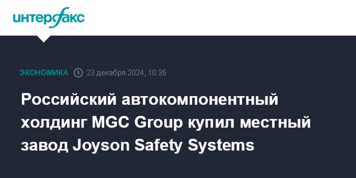Российский автокомпонентный холдинг MGC Group купил местный завод Joyson Safety Systems