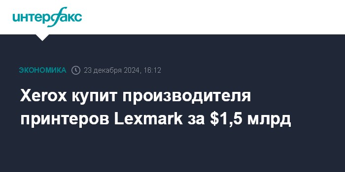 Москва. 23 декабря. INTERFAX.RU - Американская Xerox Holdings, выпускающая принтеры и копировальную технику, сообщила, что договорилась о покупке производителя лазерных принтеров Lexmark International Inc.