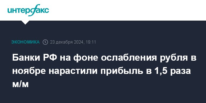 Банки РФ на фоне ослабления рубля в ноябре нарастили прибыль в 1,5 раза м/м