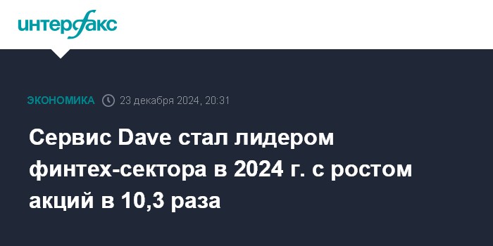 Сервис Dave стал лидером финтех-сектора в 2024 г. с ростом акций в 10,3 раза