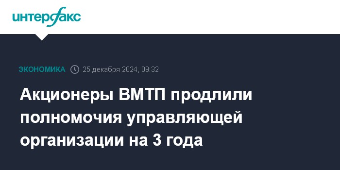 Акционеры ВМТП продлили полномочия управляющей организации на 3 года