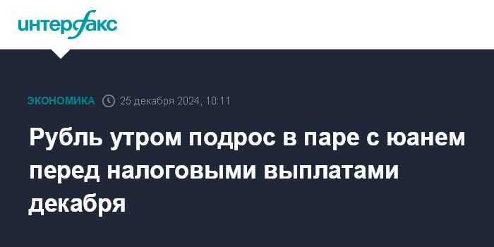 Рубль утром подрос в паре с юанем перед налоговыми выплатами декабря