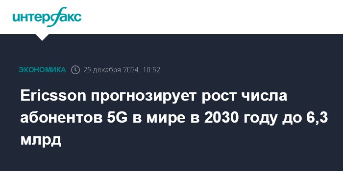 Ericsson прогнозирует рост числа абонентов 5G в мире в 2030 году до 6,3 млрд