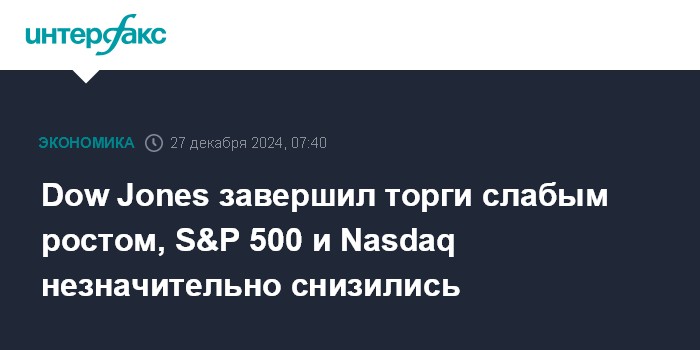 Dow Jones завершил торги слабым ростом, S&P 500 и Nasdaq незначительно снизились