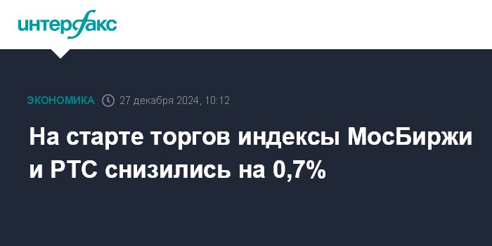 На старте торгов индексы МосБиржи и РТС снизились на 0,7%