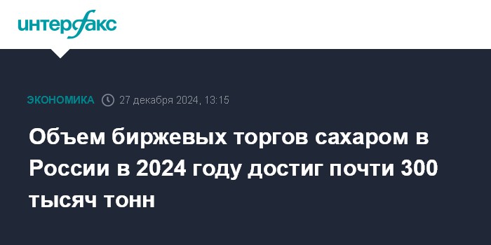 Объем биржевых торгов сахаром в России в 2024 году достиг почти 300 тысяч тонн