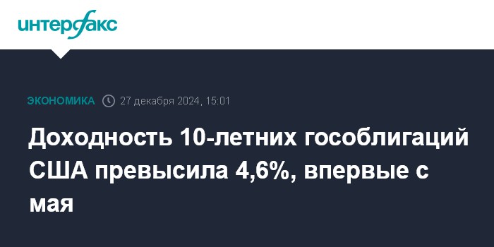 Доходность 10-летних гособлигаций США превысила 4,6%, впервые с мая