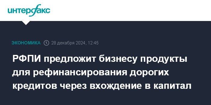 РФПИ предложит бизнесу продукты для рефинансирования дорогих кредитов через вхождение в капитал
