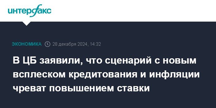 В ЦБ заявили, что сценарий с новым всплеском кредитования и инфляции чреват повышением ставки
