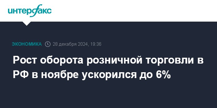 Рост оборота розничной торговли в РФ в ноябре ускорился до 6%