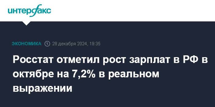 Росстат отметил рост зарплат в РФ в октябре на 7,2% в реальном выражении