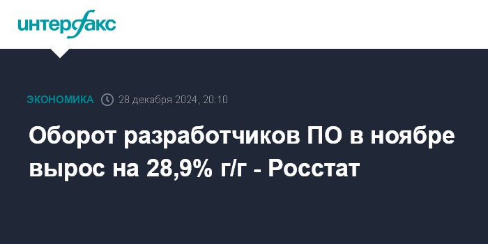 Оборот разработчиков ПО в ноябре вырос на 28,9% г/г - Росстат