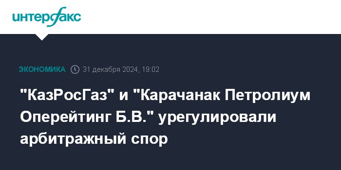 "КазРосГаз" и "Карачанак Петролиум Оперейтинг Б.В." урегулировали арбитражный спор