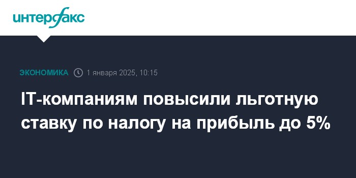 Москва. 1 января. INTERFAX.RU - Вступили в силу поправки в Налоговый кодекс, устанавливающие для IT-компаний условно льготную ставку по налогу на прибыль в размере 5%.