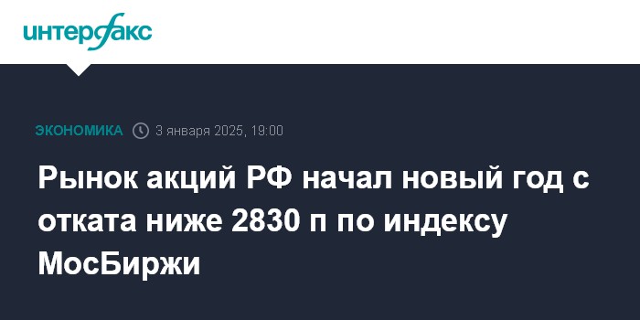 Рынок акций РФ начал новый год с отката ниже 2830 п по индексу МосБиржи