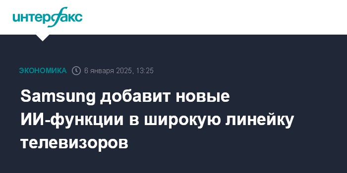 Москва. 6 января. INTERFAX.RU - Южнокорейская Samsung Electronics оснастит свои телевизоры новыми функциями искусственного интеллекта (ИИ), говорится на сайте компании.