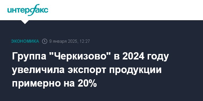 Москва. 9 января. INTERFAX.RU - Группа "Черкизово", один из ведущих производителей мясной продукции в РФ, в 2024 году, по предварительным данным, увеличила экспорт примерно на 20% как в натуральном, так и в стоимостном выражении, сообщили "Интерфаксу" в пресс-службе компании.