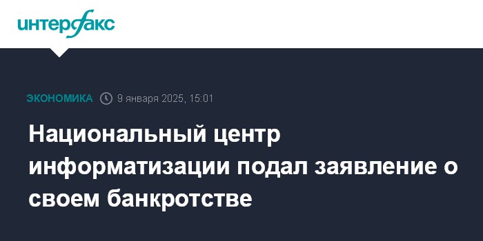 Москва. 9 января. INTERFAX.RU - ООО "Национальный центр информатизации" (НЦИ, входит в "Объединенную приборостроительную корпорацию" госкорпорации "Ростех") подало в Арбитражный суд Москвы заявление о собственном банкротстве, говорится в материалах в картотеке арбитражных дел.