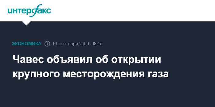 Москва. 14 сентября. INTERFAX.RU - Президент Венесуэлы Уго Чавес сообщил в интервью El Pais, что на морском шельфе страны открыто крупное месторождение природного газа, которое позволит Венесуэле войти в число ведущих мировых экспортеров этого сырья. Месторождение, разведку которого ведут испанская Repsol и итальянская Eni, может содержать 7-8 трлн куб. футов (до 220 млрд куб. м) газа, что в 4 выше предыдущих оценок, сказал он.