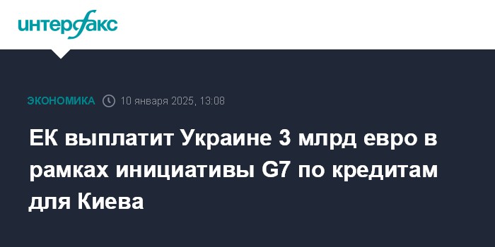 ЕК выплатит Украине 3 млрд евро в рамках инициативы G7 по кредитам для Киева