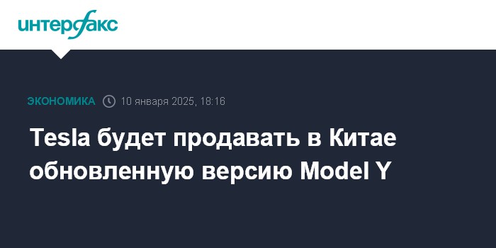 Москва. 10 января. INTERFAX.RU - Американская Tesla запустит продажи обновленной версии популярного электромобиля Model Y в Китае.