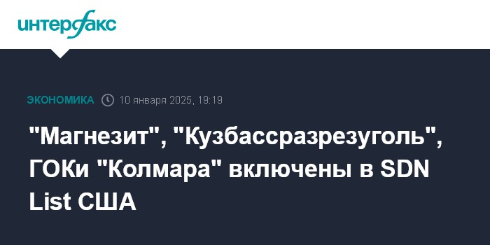 "Магнезит", "Кузбассразрезуголь", ГОКи "Колмара" включены в SDN List США