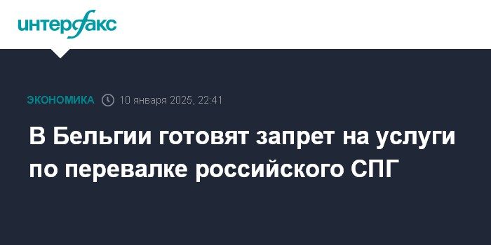 Москва. 10 января. INTERFAX.RU - Совет министров Бельгии утвердил в пятницу проект указа об ограничительных мерах в отношении перегрузки российского сжиженного газа, сообщила пресс-служба федерального правительства.