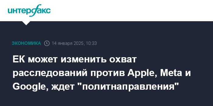 ЕК может изменить охват расследований против Apple, Meta и Google, ждет "политнаправления"