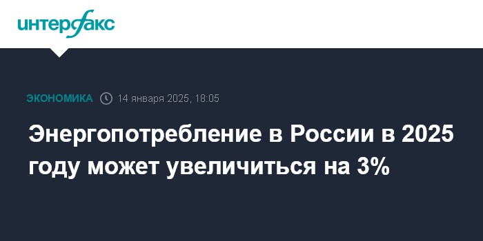 Москва. 14 января. INTERFAX.RU - В России потребление электроэнергии в 2025 году может увеличиться на 3% в сравнении с 2024 годом, сообщили журналистам в "Системном операторе".
