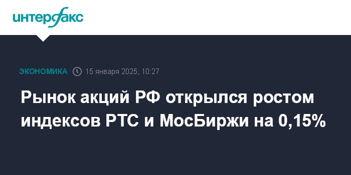 Рынок акций РФ открылся ростом индексов РТС и МосБиржи на 0,15%