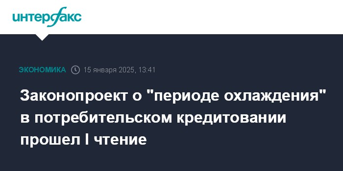 Москва. 15 января. INTERFAX.RU - Госдума приняла в первом чтении законопроект, который вводит "период охлаждения" для клиентов, которые подписали кредитный договор, до момента получения ими средств: 4 часа для кредитов на сумму от 50 тысяч до 200 тысяч рублей и 48 часов для кредитов свыше 200 тысяч рублей.