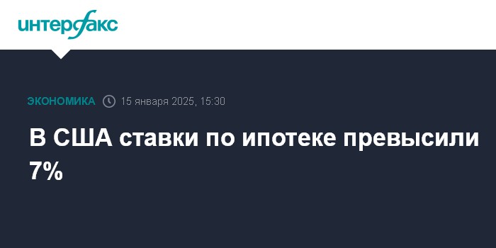 Москва. 15 января. INTERFAX.RU - В США средний размер ставок по долгосрочным ипотечным кредитам увеличился на 10 базисных пунктов на прошлой неделе и достиг самой высокой отметки с мая 2024 года, сообщила Ассоциация ипотечных банкиров (MBA).