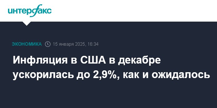 Инфляция в США в декабре ускорилась до 2,9%, как и ожидалось