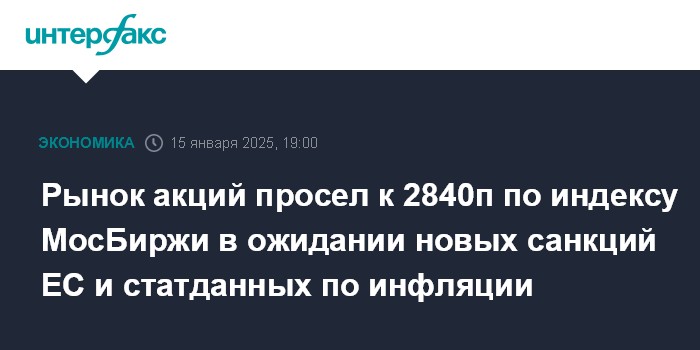 Рынок акций просел к 2840п по индексу МосБиржи в ожидании новых санкций ЕС и статданных по инфляции