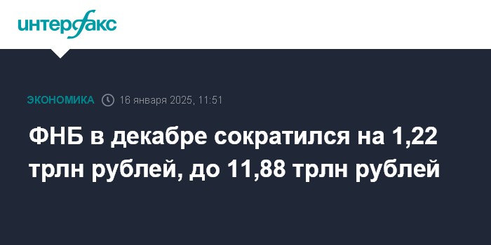 ФНБ в декабре сократился на 1,22 трлн рублей, до 11,88 трлн рублей