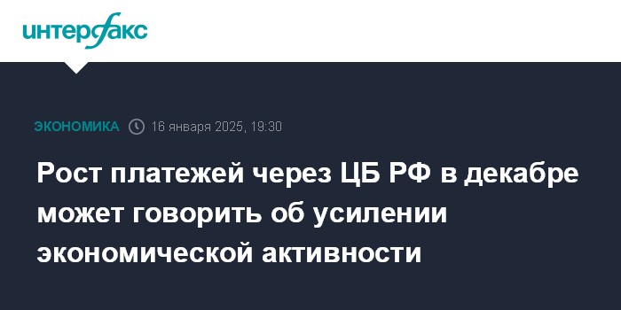 Рост платежей через ЦБ РФ в декабре может говорить об усилении экономической активности