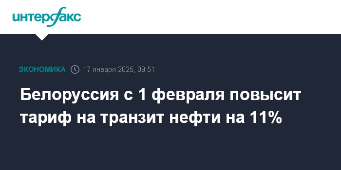 Белоруссия с 1 февраля повысит тариф на транзит нефти на 11%