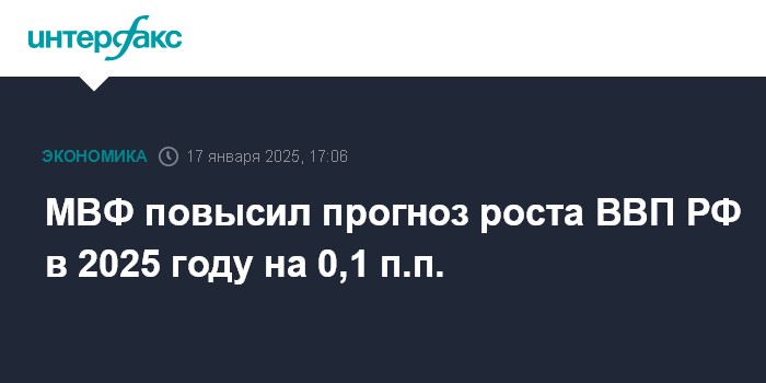 МВФ повысил прогноз роста ВВП РФ в 2025 году на 0,1 п.п.