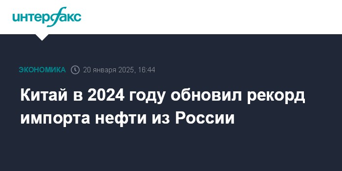 Китай в 2024 году обновил рекорд импорта нефти из России