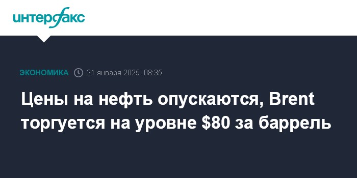 Цены на нефть опускаются, Brent торгуется на уровне $80 за баррель