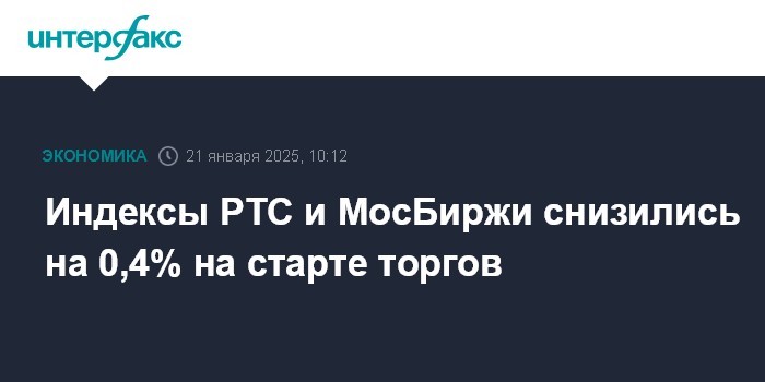 Индексы РТС и МосБиржи снизились на 0,4% на старте торгов
