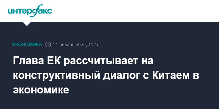 Москва. 21 января. INTERFAX.RU - Председатель Еврокомиссии Урсула фон дер Ляйен, выступая в Давосе, выразила уверенность, что Евросоюз должен в диалоге с Китаем изыскивать взаимную выгоду, не переставая защищать свои интересы.