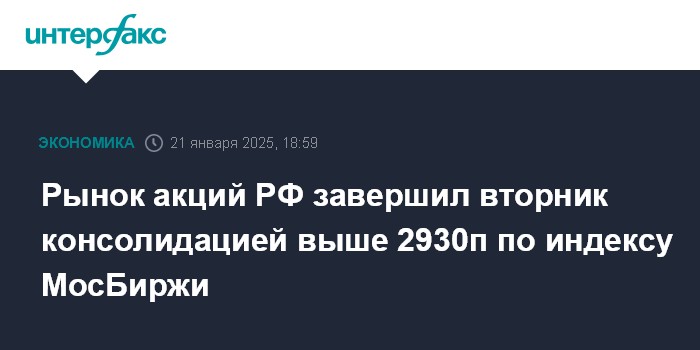 Рынок акций РФ завершил вторник консолидацией выше 2930п по индексу МосБиржи