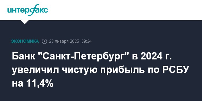 Банк "Санкт-Петербург" в 2024 г. увеличил чистую прибыль по РСБУ на 11,4%